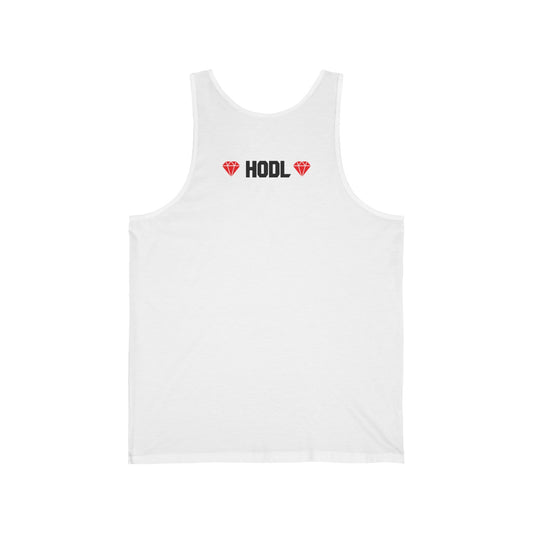 Self Made Bitcoiner White Jersey Tank w/ HODL with Diamonds on back (Crypto Currency, Bitcoin, Tank Top)